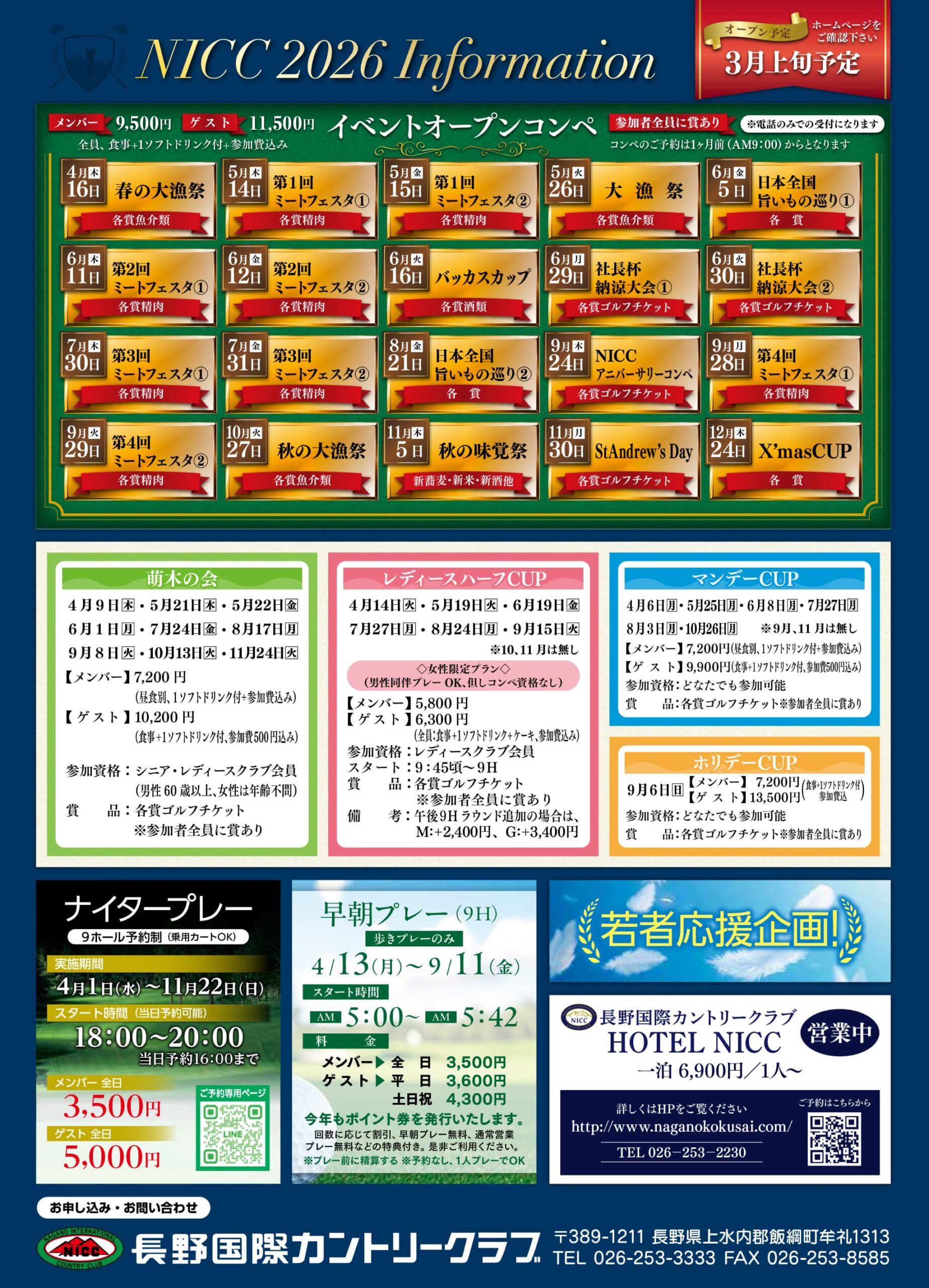 2026年度オープンコンペ等のご案内 2026.03.06【2026年度オープンコンペ等のご案内】 今年も下記内容にてイベント等を企画しております。 ご参加を心よりお待ち申し上げます。 ≪ 前の記事 一覧に戻る