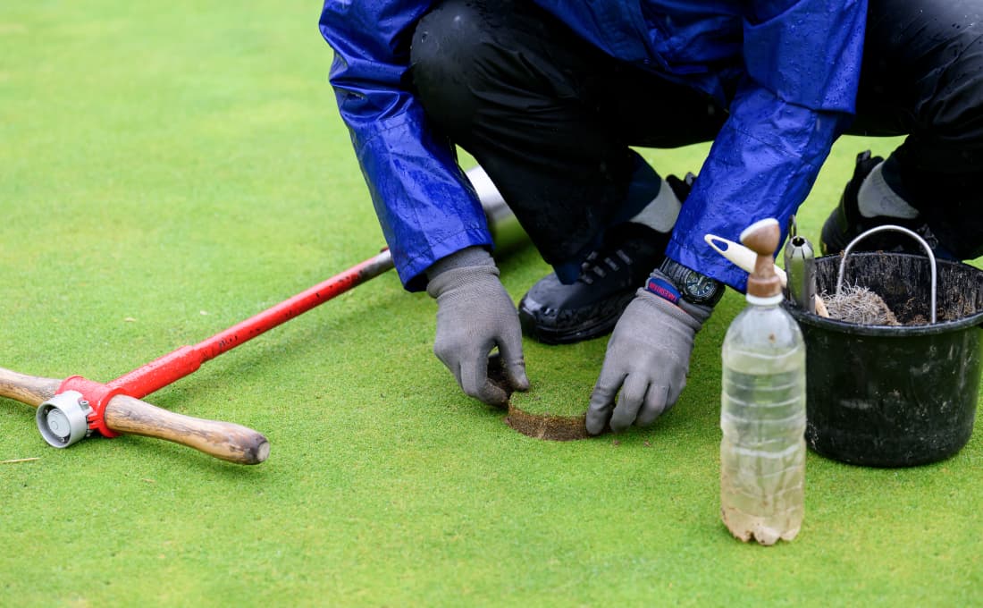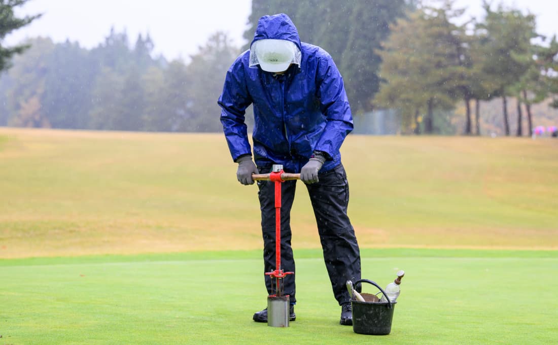 当クラブは「自社施工」の範囲が広く、散水パイプの水漏れ修理や、ティー・グリーンの位置変更に伴う土木工事、芝の張り替えなども社員自らの手で行います。